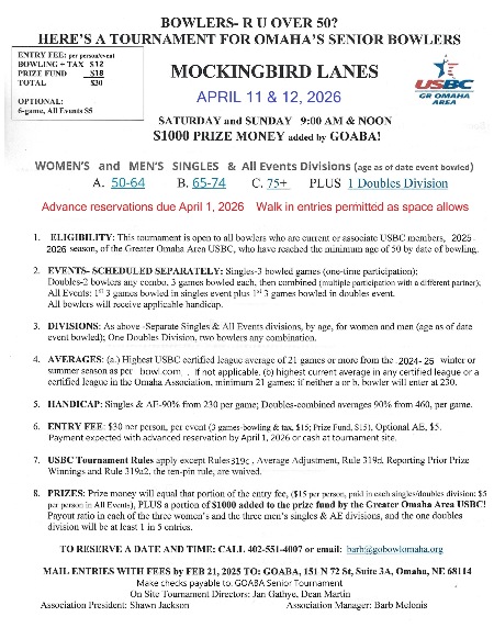Forms can be found in your local center or on Facebook, Omaha Bowling Ass'n.